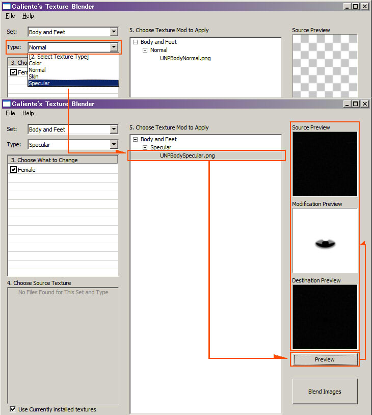 UNPBodySpecular.pngを選択してから、右下の
